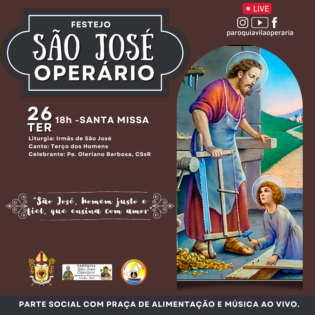Este ano o festejo terá como tema: “São José, homem justo e fiel, que ensina com amor”, e contará com a participação de padres de paróquias de Teresina e de comunidades redentoristas.